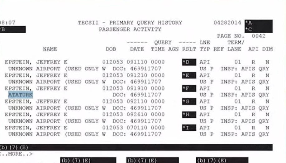 Epstein skandalına ilişkin yayınlanan binlerce belge ve fotoğraf arasından Türkiye de çıktı. Yayınlanan belgelerde Epstein’in 15 Temmuz 2010 ile 30 eylül 2013 tarihleri arasında en az 9 kez Atatürk havalimanına indiği görüldü.