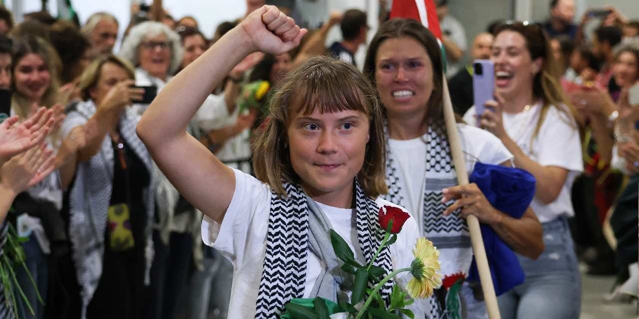 Sosyal medyada paylaşılan görüntülerde, bina önünde oturma eylemi yapan Thunberg’in elinde “Filistin hareketinin yanındayım, soykırımın karşısındayım” yazılı pankart bulunduğu, pankartına el konulduktan sonra gözaltına alınmıştı.