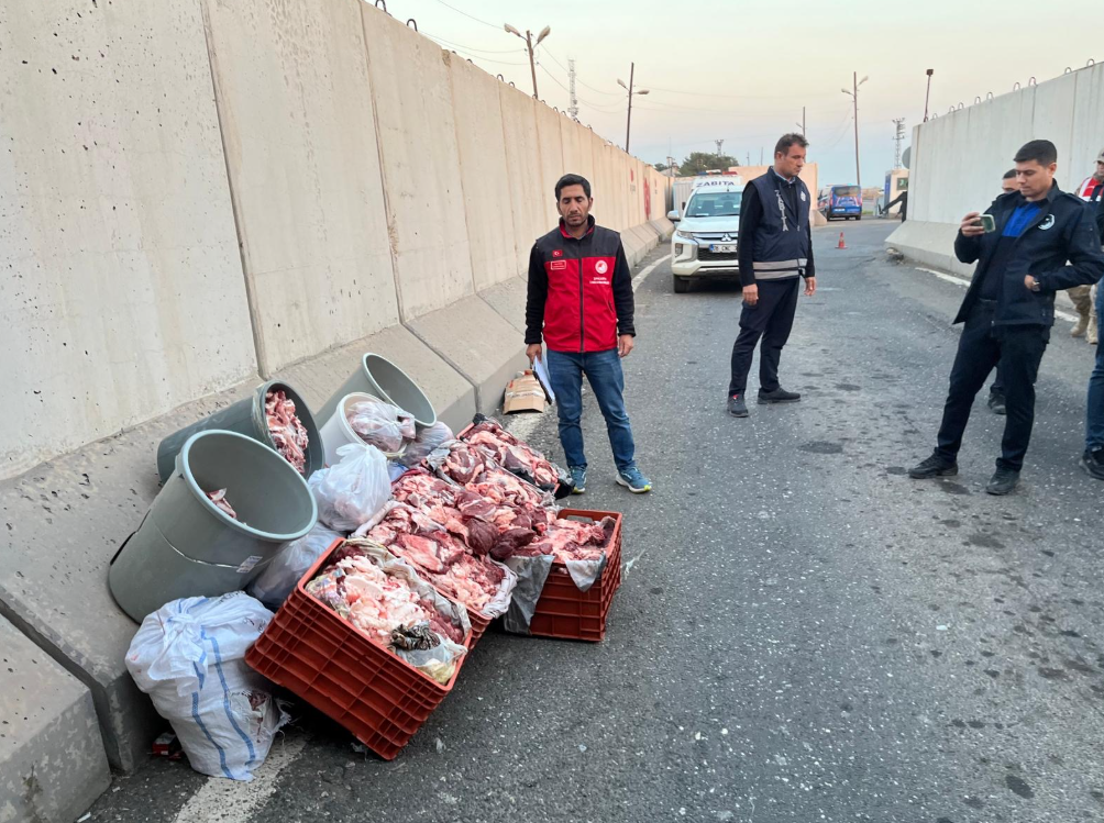 Hijyen kurallarına uygun olmayacak şekilde taşınan kokmuş et, veterinerler tarafından incelendikten sonra imha edilmek üzere zabıta ekiplerine teslim edildi.